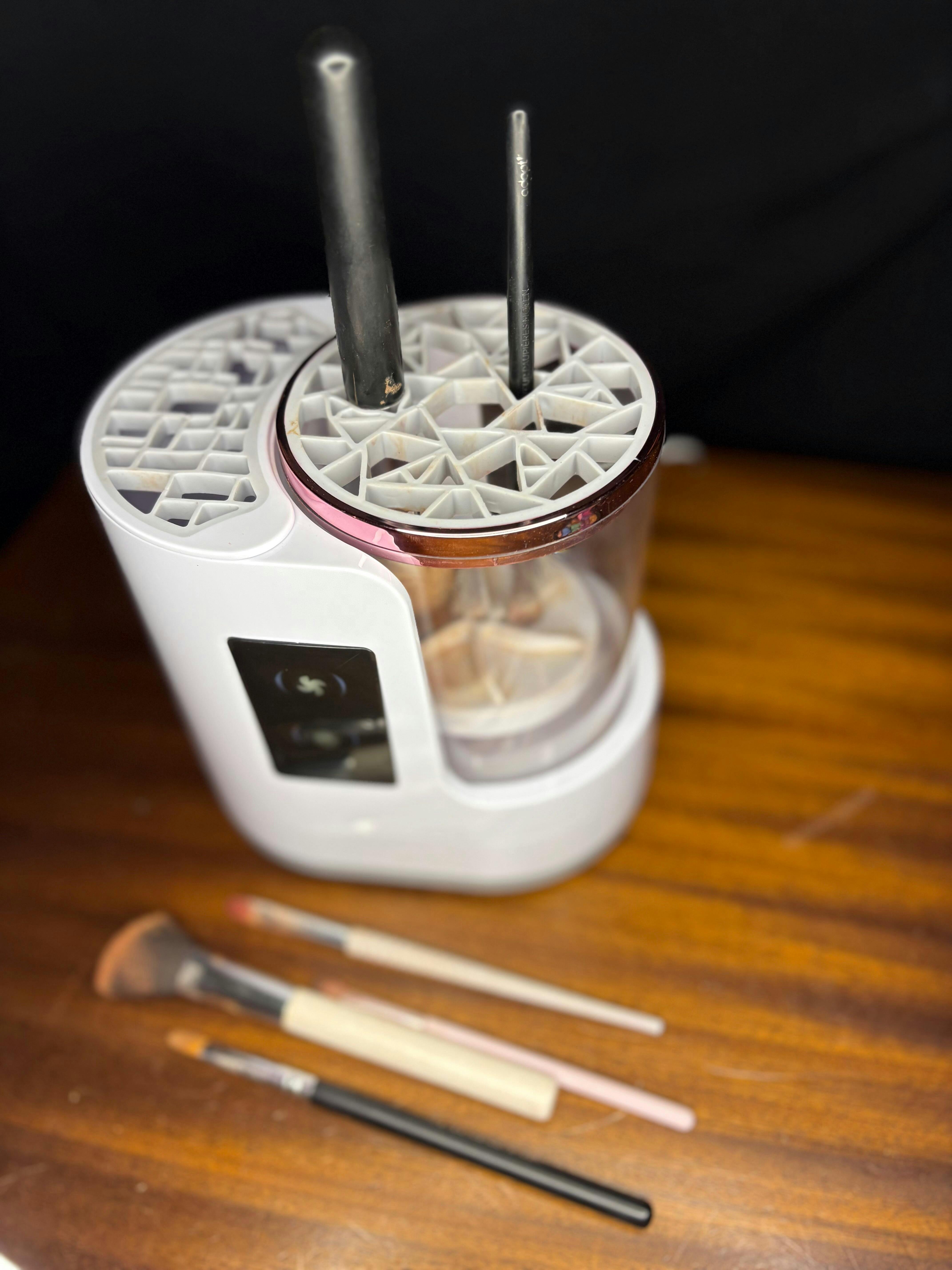 Cette machine conçue pour nettoyer efficacement la majorité des pinceaux de maquillage, qu’ils soient petits ou grands – y compris ceux pour le contour, les yeux, le blush ou la poudre.